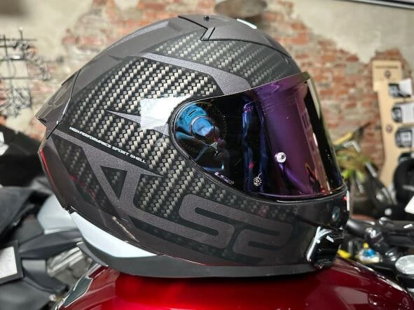 Hjelmen er helt utrolig behagelig på og den har rom for høyttalere/kommunikasjon slik at komforten endres trolig ikke selv om du vil ha litt gromlyd i hjelmen når du er på tur. I og med at skallet er i fiberglass er det plass til litt mer ventilasjon, og denne har ventilasjonsluker både oppe og nede på som skal sikre luft inn mot visiret og inn i hjelmen. Oppe har den også to som de fleste hjelmene har i dag og som sikrer lufting inn i hjelmen og ut bak. Visiret er Quick releas og har 4 steg på åpningen av visiret med lås på siste steg. Hjelmen lages i så mye som 6 forskjellige skall som gjør at man lettere skal finne noe som passer både hodeform og slik at ikke de mindre hjelmene blir like store som de større, men med mer innmat i hjelmen. Jeg fikk testet hjelmen over to hele dager og med forskjellig type kjøring. Jeg hadde hørt at noen hadde rapportert om litt plystrelyd, og jeg merket meg en lyd når jeg begynte å lære meg sykkel og bane i en av høyhastighetssvingene hvor jeg lurte på om jeg fikk et anrop (men jeg hadde ingen intercom), men det skal sies at dette var i nærmere 200 kilometer i timen liggende med vinden inn på kun et punkt på banen. Resten av testen merket jeg ingenting, og selv om jeg skal være forsiktig å mene noe om støy da det er så mange faktorer som spiller inn må jeg allikevel si at dette, til meg var en meget støysvak hjelm og en meget positiv opplevelse. Jeg har nok testet flere hjelmer enn de fleste, og denne er faktisk blant de mest komfortable jeg har testet.