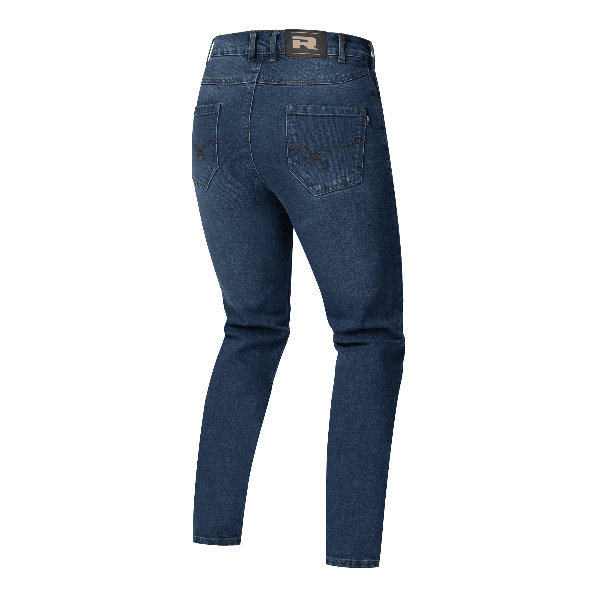 For sikkerheten er Estelle BF utstyrt med integrert D3O® Level 1-beskyttelse i lemmer, med mulighet for oppgradering til Level 2. Praktiske detaljer som to romslige ytterlommer og klargjøring for Richas beltekoblingssystem gjør jeansene til et funksjonelt og gjennomtenkt valg for aktive MC-førere.