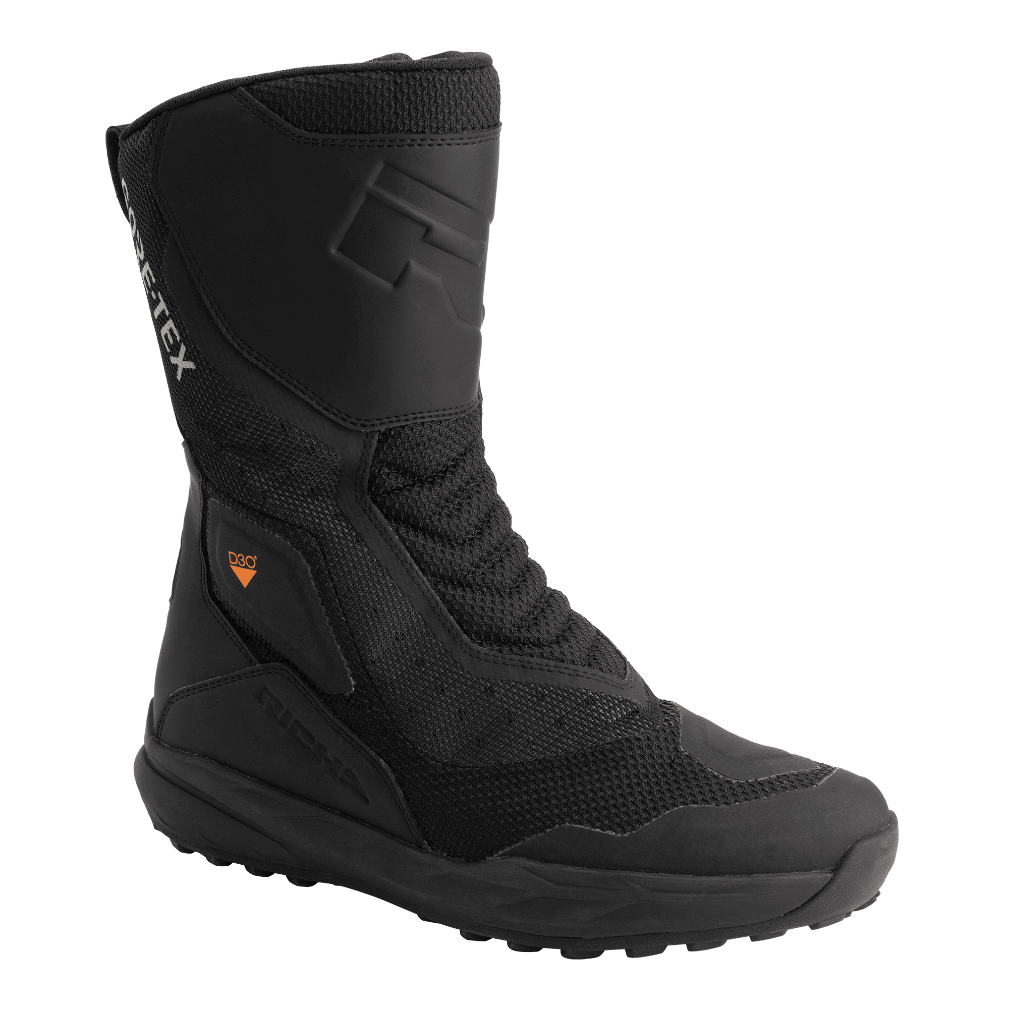Den olje- og sklisikre EVA-sålen med to komponenter gir pålitelig grep, mens Richa ACS-ventilerte soner forbedrer luftstrømmen for ekstra komfort på varmere turer. D3O-ankelforsterkninger gir avansert beskyttelse mot støt uten at det går på bekostning av fleksibiliteten.