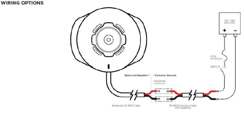 For motorsykler uten USB-strømkilde kobles Quad Lock værbestandig 12V til USB Smart Adapter til motorsykkelens batteri eller eksisterende SAE-kontakt, og gir en enkel strømkildeløsning (selges separat).