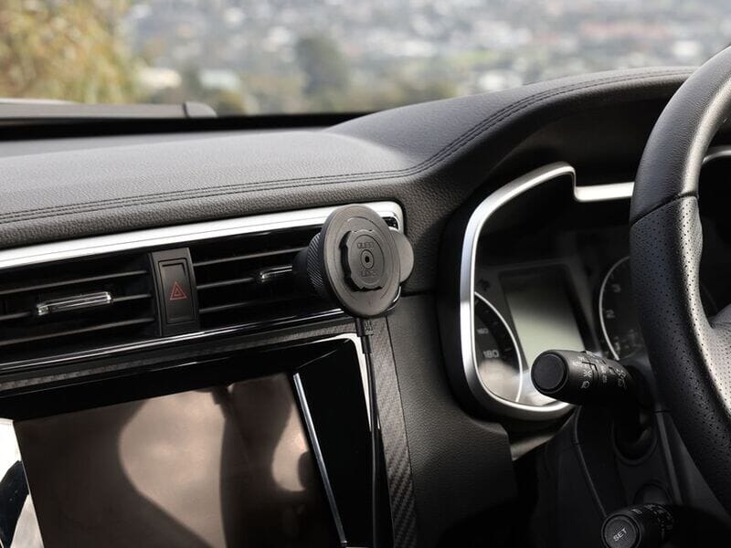 Quad Lock MAG trådløse lade hode til Quad Lock bil eller skrivebords feste. De sterke magneter holder telefonen på plass under bruk i hjemmet, kontoret eller i bilen. Quad Lock-grensesnittet og magneten sikrer at du alltid monterer telefonen rett, enten i stående eller liggende retning.